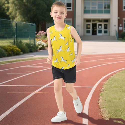 Boys Tank Top Shirts Unicorn Flower Horse Yellow Sleeveless T-Shirts Crew Neck for Kids Clothing Children 5