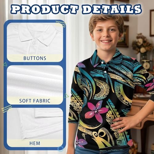 • MATERIAL: Boys golf shirt is made of 95% polyester+5% spandex, soft, lightweight, breathable, stretchy and comfortable to wear for fall spring and winter