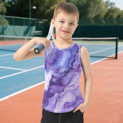 Boys Tank Top Shirts Blue Purple Marble Sleeveless T-Shirts Crew Neck for Kids Clothing Children 6