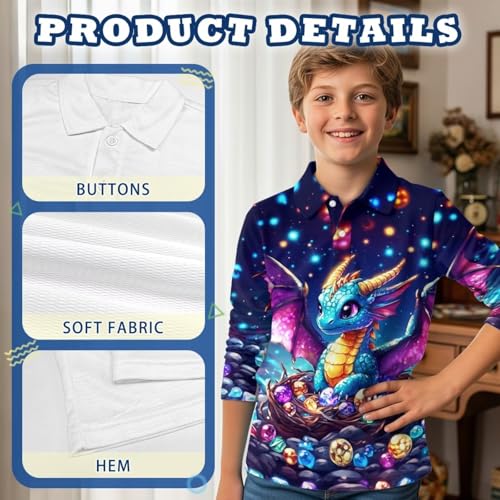 • ATHLETIC SPORTS SHIRT FOR KIDS TEENS: This long sleeve collared t shirt fits 3-16 years boys, and there are 7 kinds of size for choosing, please refer to our size chart before place an order