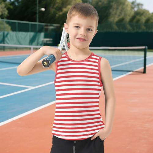 Red with White Stripes Pattern Boys Tank Top Sleeveless Quick Dry Athletic T-Shirts 3-10T 6