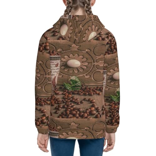 Coffee Beans Kids Pullover Hoodies Boys Zip Up Sweatshirts Girls Athletic Clothes with Pocket 4
