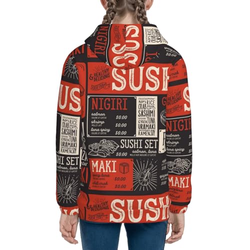 Sushi Menu Kids Pullover Hoodies Boys Zip Up Sweatshirts Girls Athletic Clothes with Pocket 4