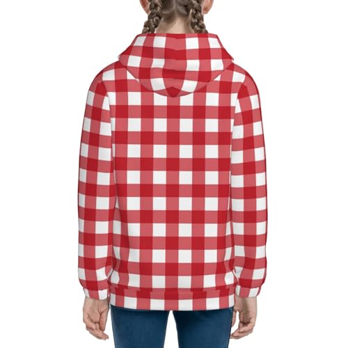 Red Checkboard Kid Hoodies Boys Zip Up Sweatshirts Girls Pullover with Pocket 5