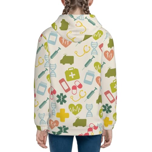Medical Icons Kid Hoodies Boys Zip Up Sweatshirts Girls Pullover with Pocket 4