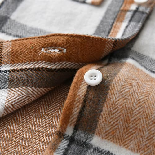 Toddler Boy Flannel Plaid Shirt Kids Long Sleeve Button Down Jacket Lapel Pocket Top Regular Fit Casual Fall Clothes 7