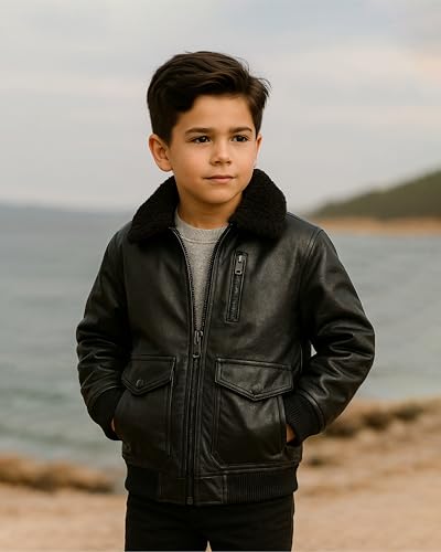 • SHERPA COLLAR FOR ADDED WARMTH: Your boy will stay warm and stylish with the sherpa-lined collar, perfect for chilly days. This timeless detail not only locks in warmth but also adds a classic aviator look that's great for everyday wear or special outings.
