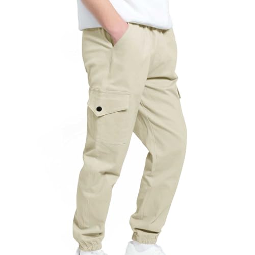Cargo Pants Boys Childrens Sports Track Pants Stretch Elastic Waist School Kids Twill Joggers for 4-13 Years 4