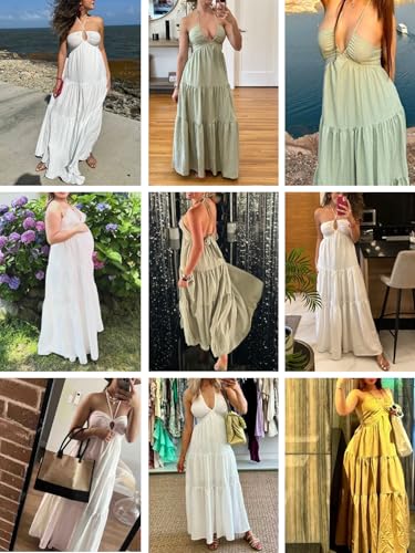 Narecte Women's Maxi Summer Dresses Halter V Neck Beach Dresses for Women A-Line Casual Dress for Vacation 7