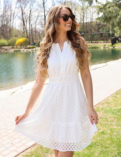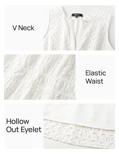 More information about ZESICA Women's Summer Sleeveless Mini Dress V Neck Hollow Out Eyelet High Waist A Line Swing Short Party Dresses