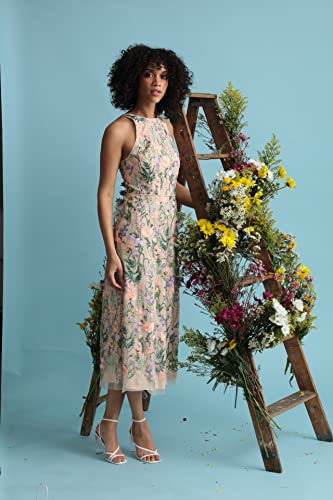 Maggy London Women's Garden Embroidered Mesh Halter Midi Dress-Perfect for Wedding Guest & Special Occasions 6