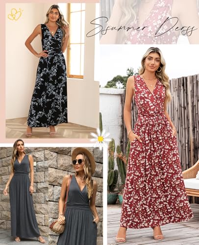 CATHY Women's Casual Sleeveless Deep V Neck Beach Waist Maxi Dresses with Pockets 1