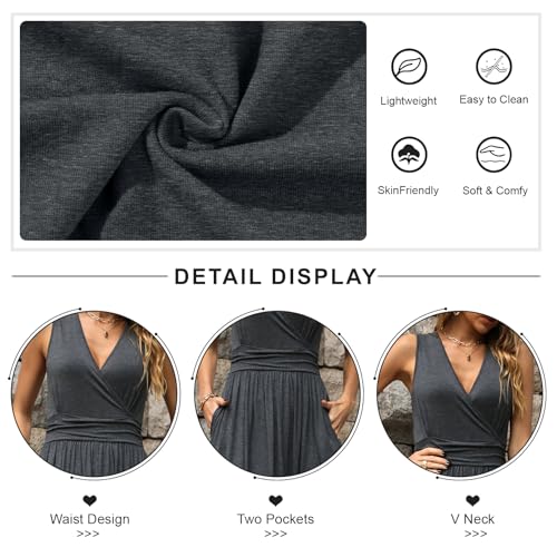 More information about CATHY Women's Casual Sleeveless Deep V Neck Beach Waist Maxi Dresses with Pockets