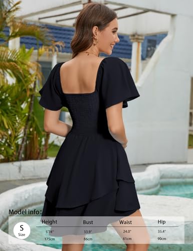 • ELEVATE YOUR SUMMER LOOK: Designed to flatter, every detail shines: the knot front bust, sweetheart neckline, and flutter sleeves add romantic charm. The A-line layered silhouette and mini length create a playful look, ideal for elevating your summer wardrobe