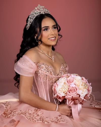 • Design: Beaded Applique Quince Dresses with layered Tulles ,Beaded Tassels ,Big Bow,Layered,Beaded, glitter tulle ,off the shoulder ;big puffy dress,corset , lace up closure,it is easier for us adjust the size. Kindly noted: The model in the picture wears underskirt. If you want to achieve the same look as the picture, you can wear a underskirt too.