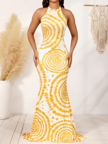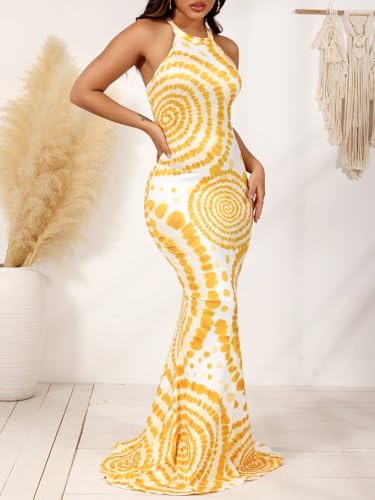 EDITCOZY Women Sexy Bodycon Maxi Dress Tie Dye Beach Summer Dresses Halter Backless Vacation Long Sundress 4