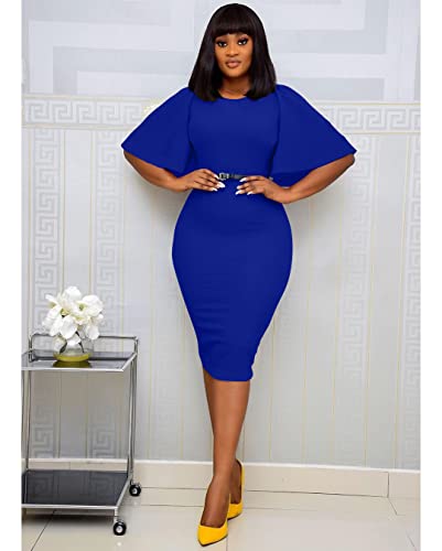 HOT ! Memoriesea Women's Basic Bodycon Ruffle Flared Short Sleeve Pencil Midi Dress