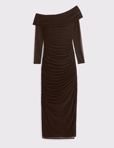 HOT ! Relipop Women Off Shoulder Dress Long Sleeve Bodycon Mesh Ruched High Split Fall Formal Wedding Guest Maxi Dresses