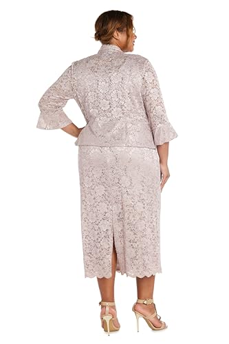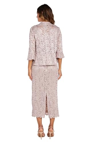 R&M Richards Womens 2-Piece Glitter Lace Jacket Dress W/Scalloped Trim for Formal & Cocktail Events. 2