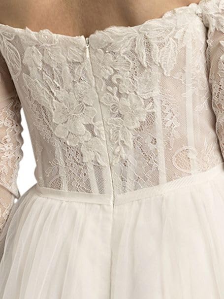 • ELEGANT DESIGN: Off-the-Shoulder Tulle Corset A-Line Wedding Dress with timeless style details and a flattering silhouette