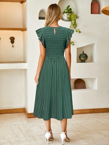Simplee Womens Striped Midi Summer Dress Smocked Flutter Short Sleeve Dress 2025 Flowy Casual Dress with Pockets 6