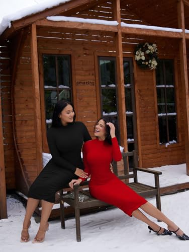 More information about LAGSHIAN Women's Cocktail Bodycon Long Sleeve Mock Neck Mesh Ruched Midi Party Dress