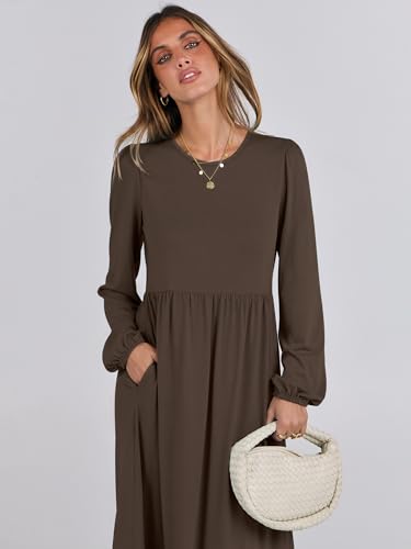 More information about ANRABESS Long Sleeve Midi Dresses for Women Casual 2025 Fall Crewneck A Line Tiered Flowy Loose Trendy Dresses with Pockets