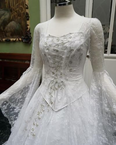 More information about Mouccy Gothic Victorian Dresses for Women Flare Sleeve Medieval Wedding Dresses for Bride Lace Vintage Ball Gowns with Coat