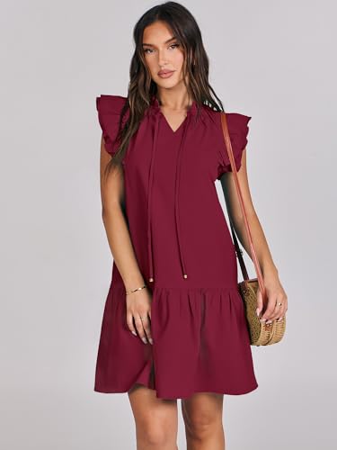 More information about ANRABESS Womens Summer V-Neck Drawstring Ruffle Cap Short Sleeve Casual Shift Mini Dress with Pockets