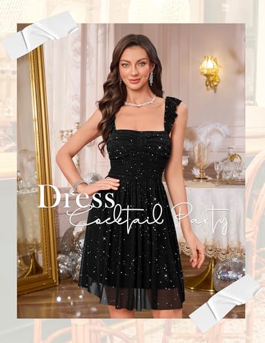 • Features:The Sequin Dress features square neck and ruffle strap design, showcase your shoulders and neckline,makes you more charming. Flowy double-layer hem, bringing a touch of agility. The ruched design on the chest adds a bit of chic cuteness.