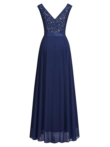 Miusol Women's Sexy Deep V-Neck Sequin Lace Double Sleeveless Evening Party Maxi Dress 6