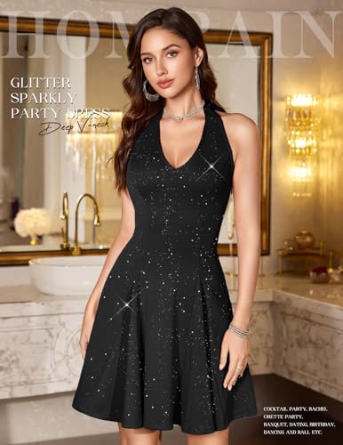 HomRain Glitter Sparkle V Neck Cocktail Dress for Women A Line Backless Halter Sequin Homecoming Evening Party Dresses 1