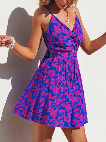 More information about CUPSHE Women's Mini Dress Floral Twisted V Neck Sleeveless Short Dress Pleated Self Tie Back Mini Dress