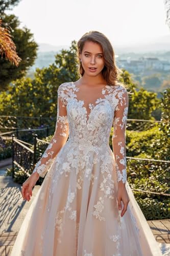 • ✿【Feature】This lace boho wedding dress for bride features scoop neck,side slit,lace applique,a line,floor length,sleeveless,with train.A perfect choice for wedding party,beach wedding, church wedding and other special occasions.
