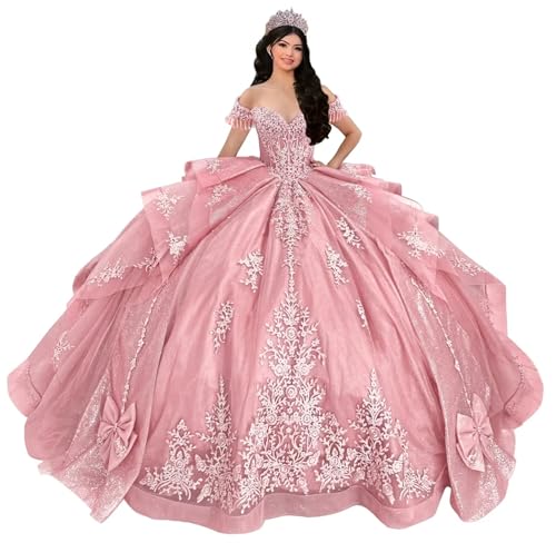 More information about Mauuwy Off Shoulder Quinceanera Dresses Layered XV Sweet 16 Dresses with Tassels Beaded Vestidos De 15 Años with Bow