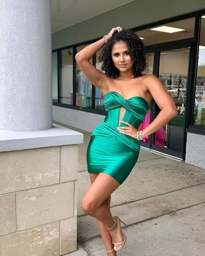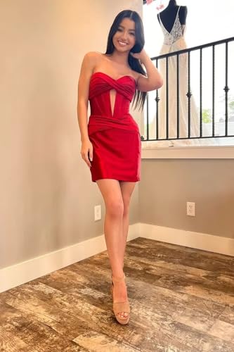 More information about Strapless Satin Homecoming Dresses for Teens 2025 Sweetheart Bodycon Cocktail Mini Dress with Pleats TM168