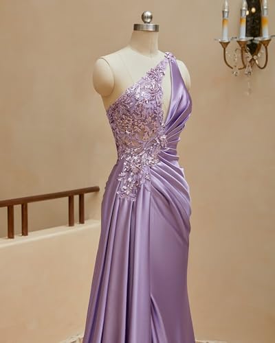 More information about Womens One Shoulder Prom Dresses 2025 Elegant Mermaid Satin Ruched Formal Evening Dresses