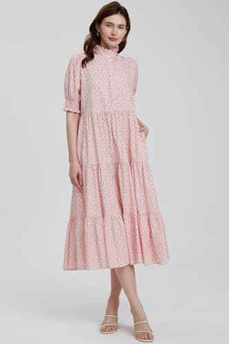 • Design:Ruffled stand collar and floral printed make this floral dress more elegant and sophisticated.Tiered details add a touch of flowy and feminine.Side pockets for safe storage phone and other belongings