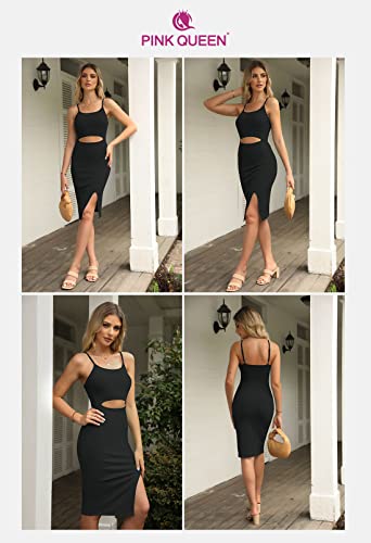 More information about Pink Queen Women's Spaghetti Strap Cutout Side Slit Ribbed Knee Length Bodycon Midi Dress Club Party Dresses for Women