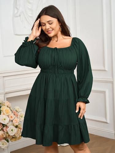 • Design: Women's plus size dresses feature a smocked elastic waist that flatters your curves with all-day comfort. The square neckline and lantern sleeves offer feminine vintage appeal. This plus size long sleeve dress hits above the knee for stylish, easy movement
