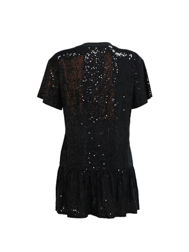 More information about KIRJAUDU Women Sparkly Sequin Mini Dress Crewneck Bling Letter Print Half Sleeve Loose Mini Dress Clubwear