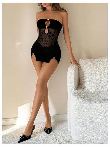 • Feature: Sheer Mesh, See Through, Cut Out, Sleeveless, Strapless, Sexy, Bodycon Mini Dress for Women, Ladies