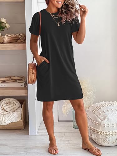 • Features - Short sleeve dress with a crewneck design, side slits detail, casual style, a fashionable shirt dress for spring and summer. This dress is perfect for daily wear, the office, outdoor activities, street style, and work.