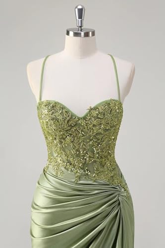 • Features:Xsqmbwb Prom Dresses,Spaghetti Strap,with Slit,Lace Appliques,with Train,Mermaid,Sweetheart,Ruched,Corset,Sleeveless,Satin Fabric,Lace Up Back,Built in Bra,Fully Lined,Floor Length Long.Ruched Satin Mermaid Prom Dresses with Slit,Spaghetti Strap Lace Appliques Formal Evening Party Gown.