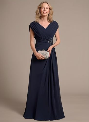More information about Cap Sleeves Mother of The Bride Dress for Wedding Chiffon Long Ruched A Line Formal Evening Dresses JH020