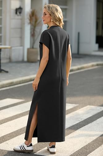 GRECERELLE 2025 Women Summer Mock Neck Short Sleeve Casual Loose Split Wrinkle-Free Long Maxi Dress with Pockets 3