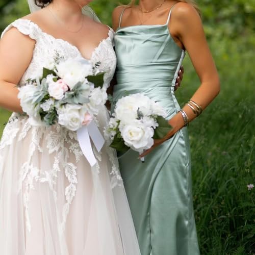 • Features:Spaghetti Straps with ruched bust design make this bridesmaid dress flattering and gorgeous, Flowy Satin bridesmaid dresses with pockets for women, elegant Spaghetti Straps pleated prom gown with empire waist, Sleeveless The look is complete with an Mermaid skirt and leg slit