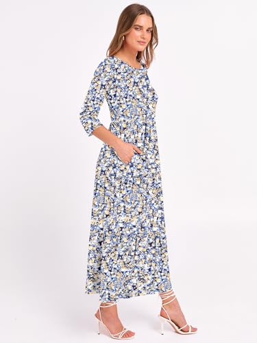 Prinbara Women's 3/4 Sleeve Casual Maxi Floral Dresses 2025 Fall Crewneck A-line Tiered Flowy Summer Boho T Shirt Long Dress 2