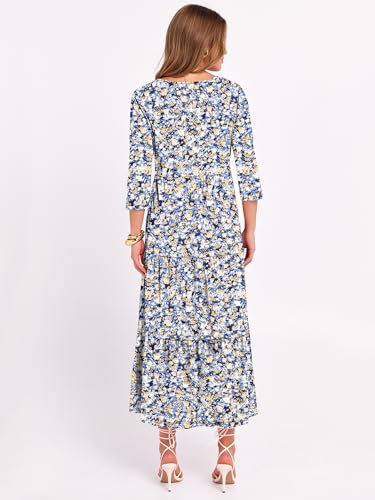 Prinbara Women's 3/4 Sleeve Casual Maxi Floral Dresses 2025 Fall Crewneck A-line Tiered Flowy Summer Boho T Shirt Long Dress 3