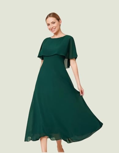 More information about Mother of The Bride Dresses Tea Length for Women Wedding with Sleeves Chiffon Formal Dress